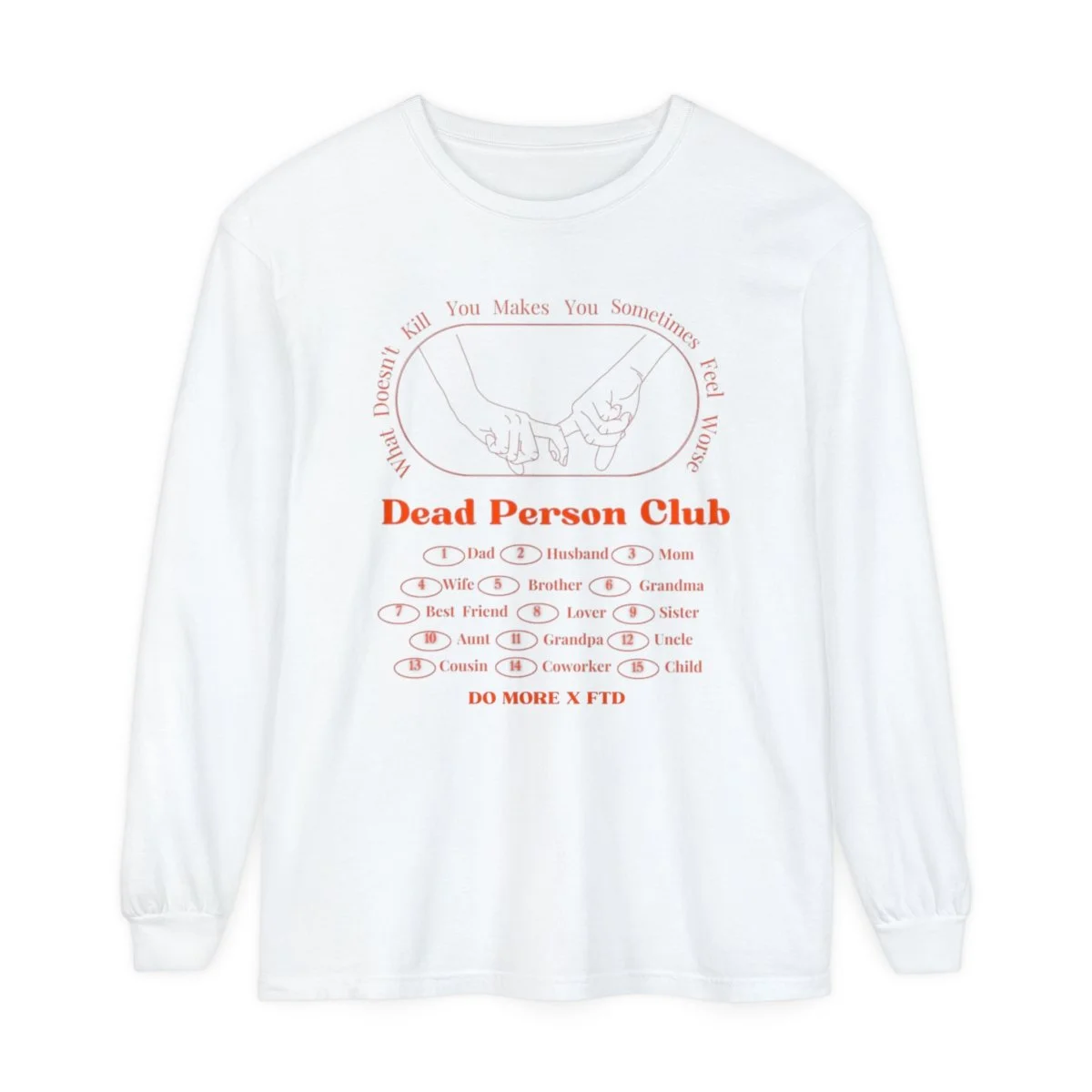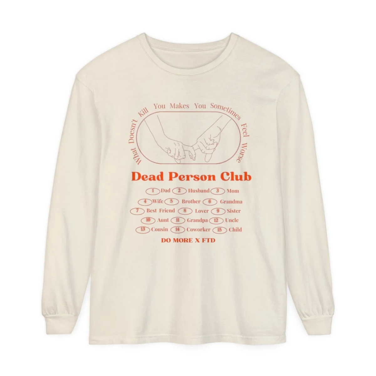 This collection is dedicated to all of our fellow new & old mourning people. Death & grief are one of the few things all of us humans have in common & yet still seems to be so taboo to speak of freely. In honor of our dads, Jimmy Polk and Craig Kuykendall, who unknowingly lived only a few miles away from one another in the same small town, suffering from the same disease. As the days go by, the pain that came along with their absence taught us the importance of processing your grief & allowing space for yourself to mourn someone who once was. We sought for a more modern take on griefwear to open conversation to one of the few things that connects us all, our dead people. Proceeds will go to the Association for Frontotemporal Degeneration in support of the ever-growing research for FTD.